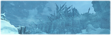 対竜要塞「ダスクヴィジル」。かつて、皇都防衛を担う要衝として、精強な騎兵団が駐屯していたこの城塞も、霊災後に西部高地を直撃した寒冷化の前には為す術もなく、今や氷漬けの廃墟と化している。 |