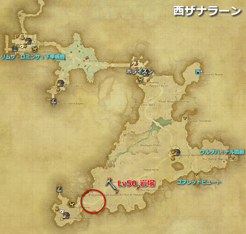 | ザナラーン | 西ザナラーン | 金槌台地 | line:6 | Lv5 | (MAP) |