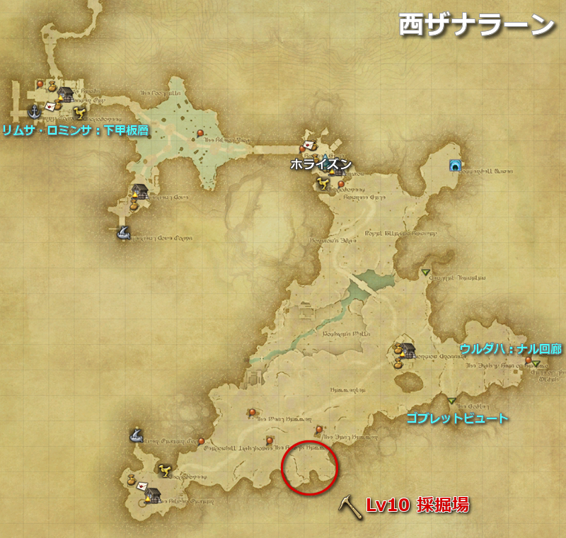 | ザナラーン | 西ザナラーン | 金槌台地 | line:2 | Lv10 | (MAP) |