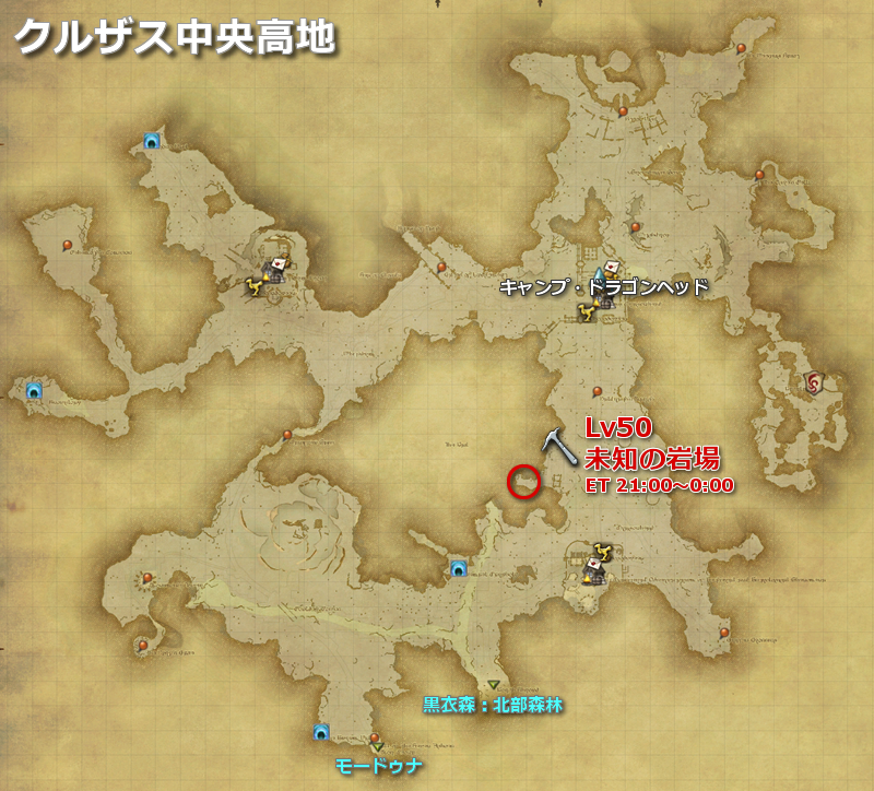 | クルザス | クルザス中央高地 | 未知の岩場 | line:7 | Lv50 | (MAP) |