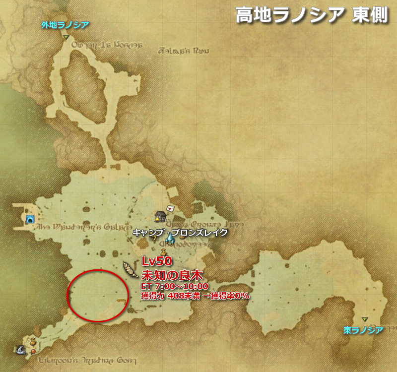 | ラノシア | 高地ラノシア | 未知の良木 | line:2 | Lv50 | (MAP) |