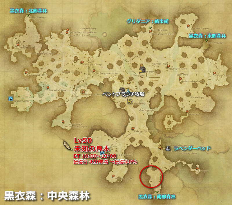 | 黒衣森 | 黒衣森:中央森林 | 未知の良木 | line:6 | Lv50 | (MAP) |