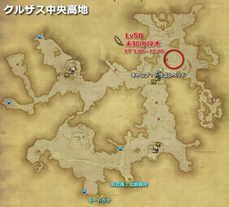 | クルザス | クルザス中央高地 | 未知の良木 | line:6 | Lv50 | (MAP) |