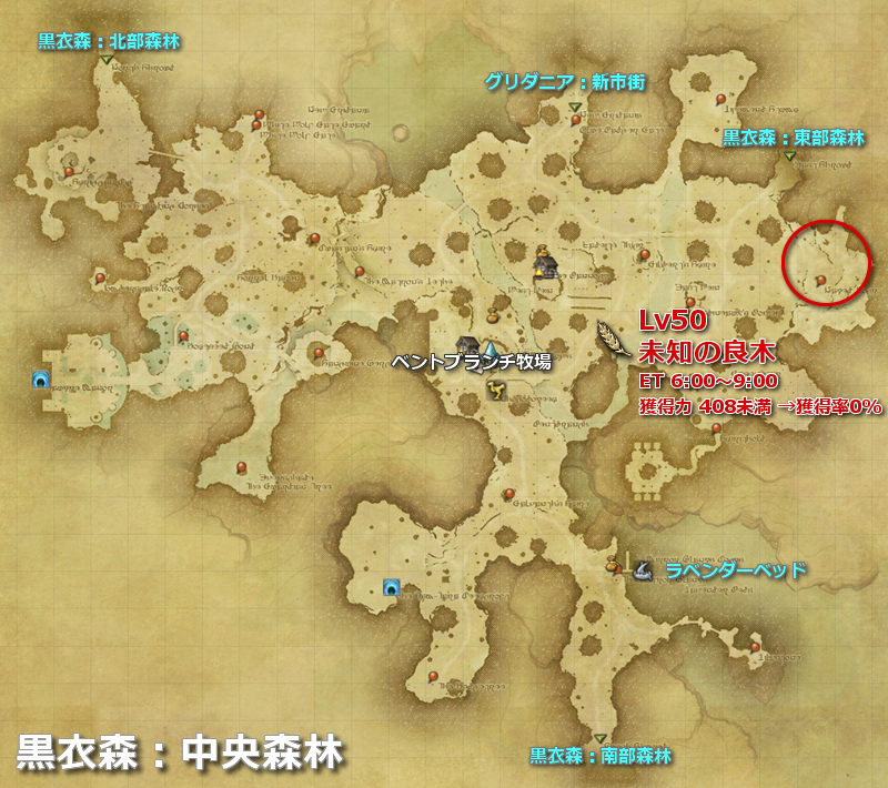 | 黒衣森 | 黒衣森:中央森林 | 未知の良木 | line:6 | Lv50 | (MAP) |