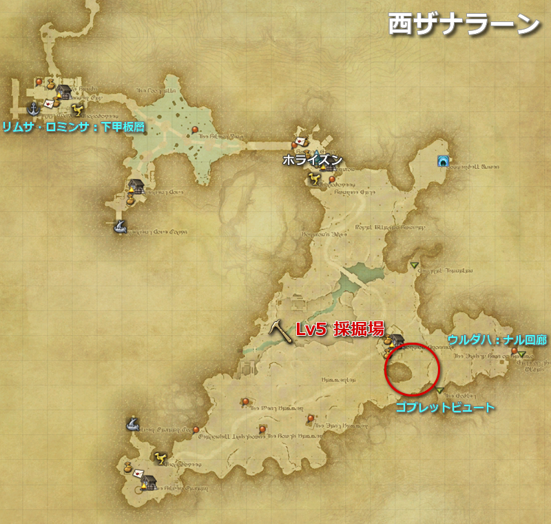 | ザナラーン | 西ザナラーン | 金槌台地 | line:5 | Lv5 | (MAP) |