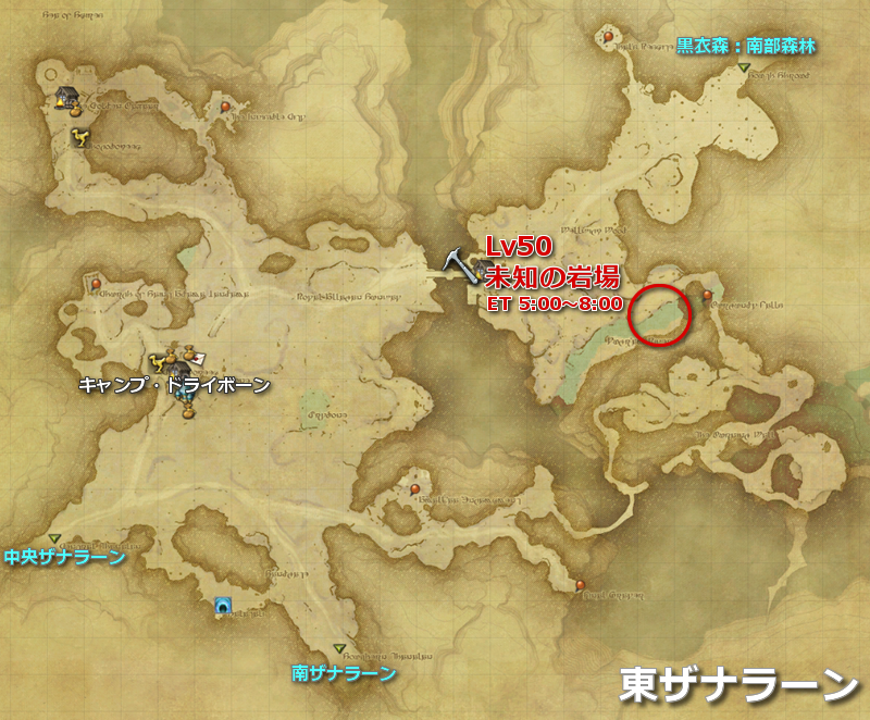 | ザナラーン | 東ザナラーン | 未知の岩場 | line:2 | Lv50 | (MAP) |