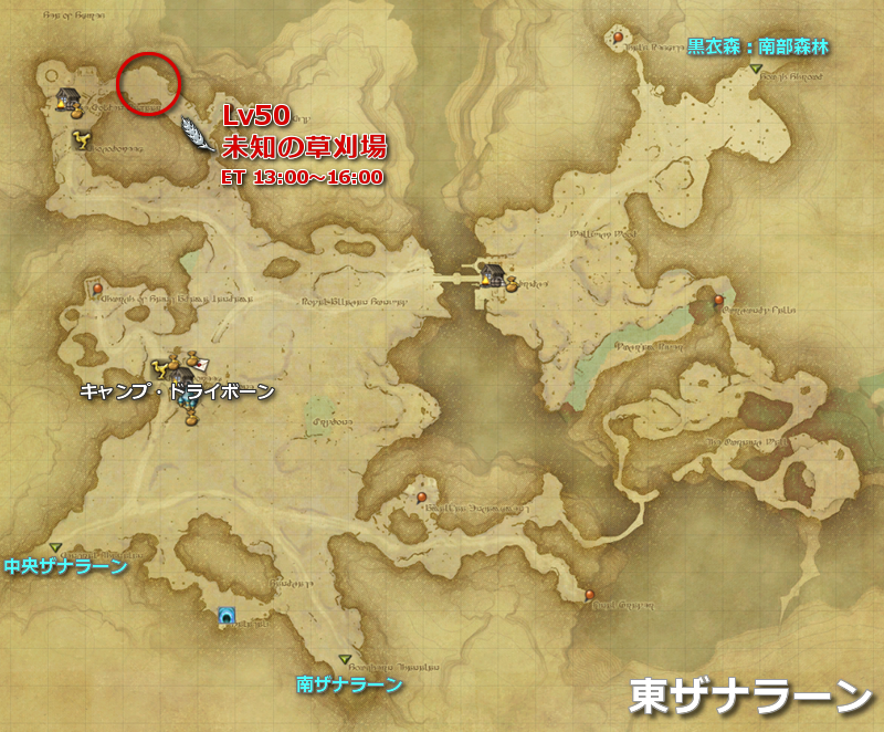| ザナラーン | 東ザナラーン | 未知の草刈場 | line:7 | Lv50 | (MAP) |