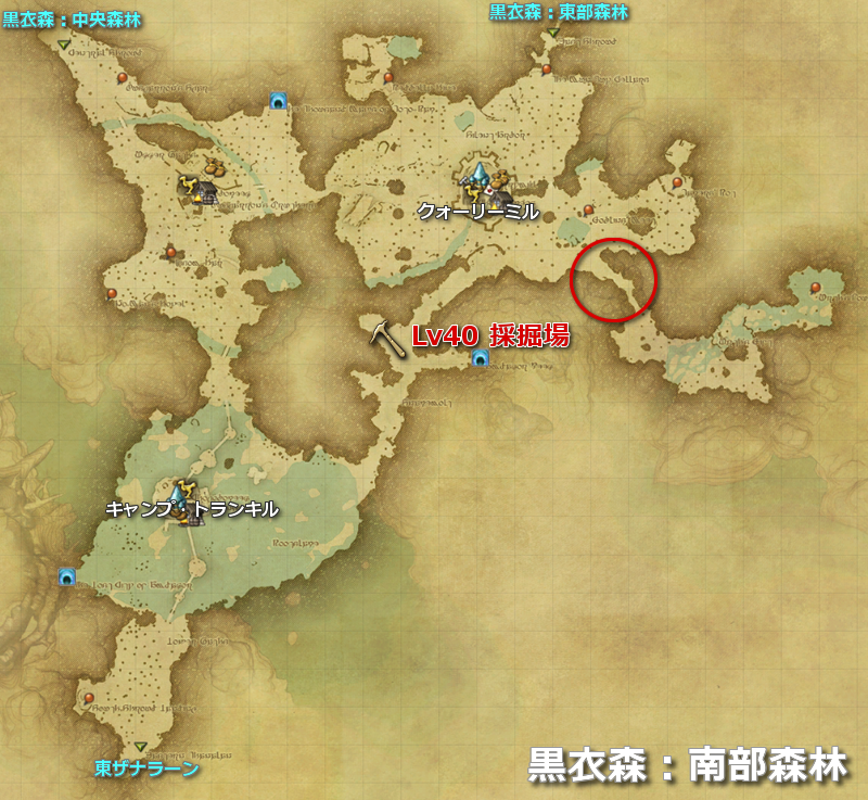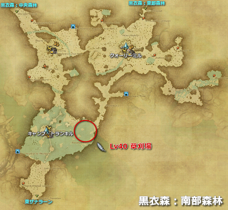 | 黒衣森 | 黒衣森:南部森林 | ロウアーパス | line:5 | Lv40 | (MAP) |
