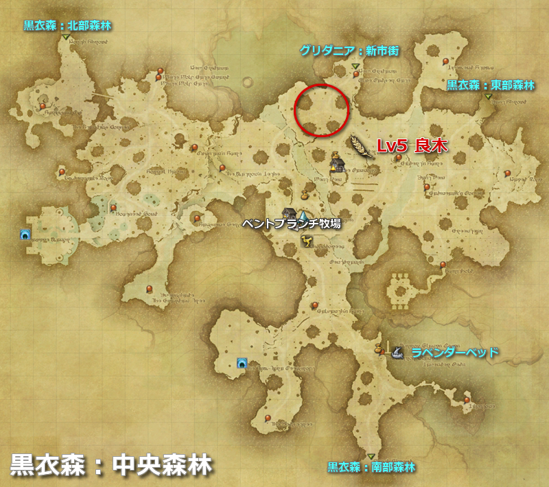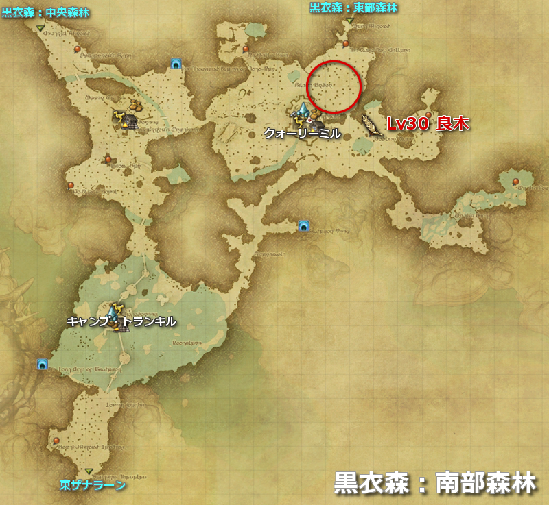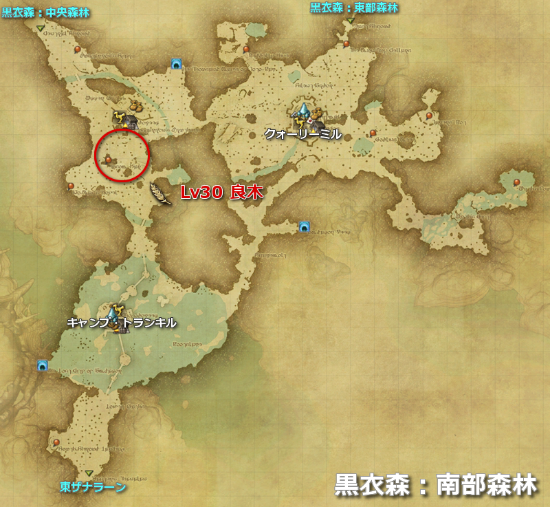 | 黒衣森 | 黒衣森:南部森林 | アッパーパス | line:5 | Lv30 | (MAP) |