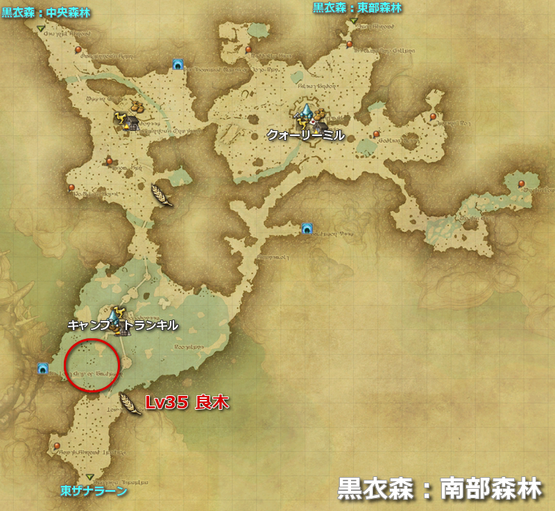 | 黒衣森 | 黒衣森:南部森林 | ロウアーパス | line:5 | Lv35 | (MAP) |