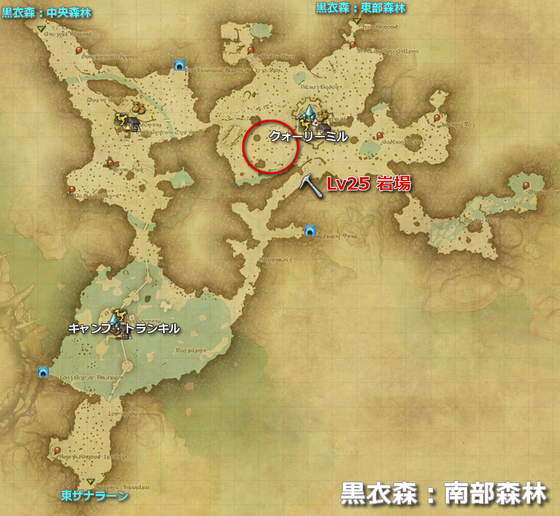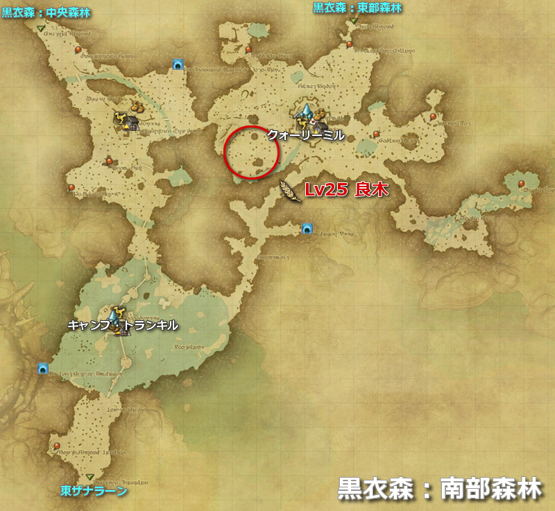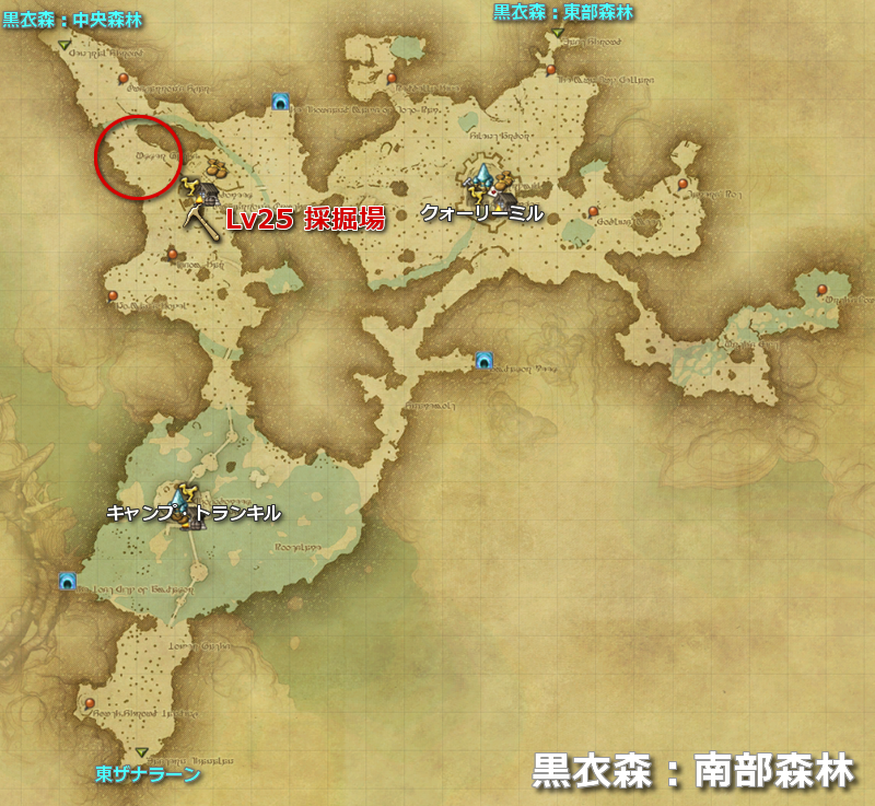 | 黒衣森 | 黒衣森:南部森林 | アッパーパス | line:5 | Lv25 | (MAP) |
