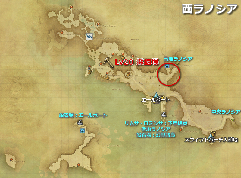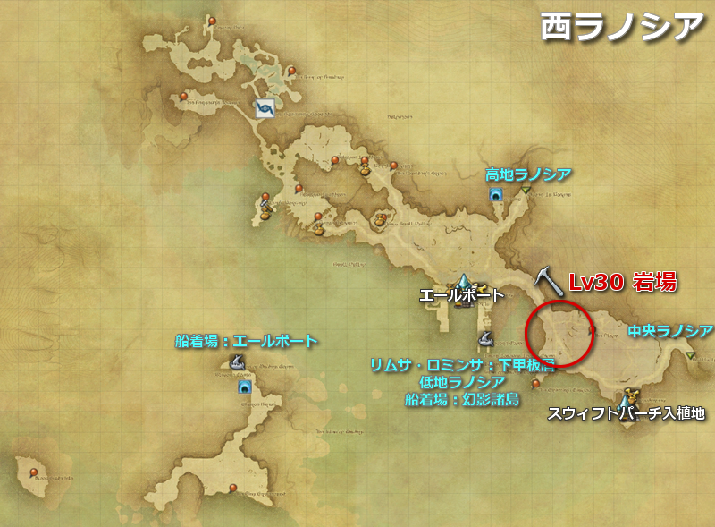 | ラノシア | 西ラノシア | スカルバレー | line:5 | Lv20 | (MAP) |